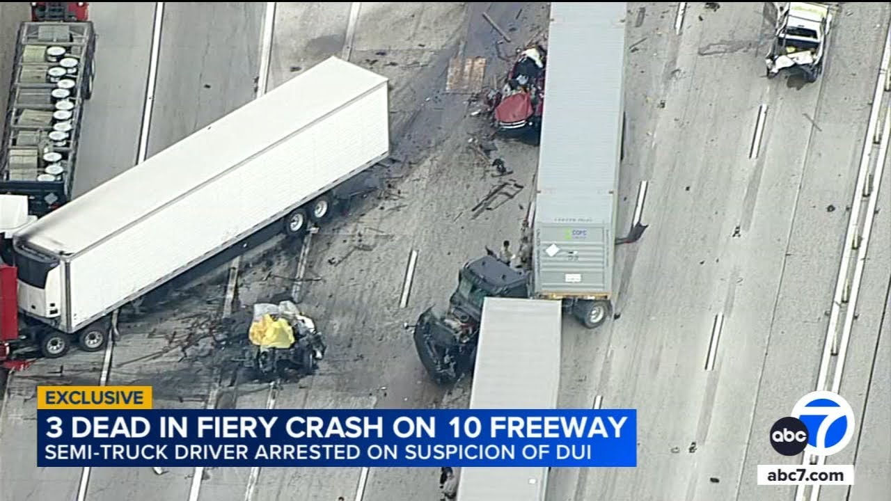 A 21-year-old semi-truck driver was arrested following a multi-vehicle collision on the 10 freeway in Ontario, California, which resulted in at least three fatalities. The suspect, Jashanpreet Singh, is alleged to have been driving under the influence of alcohol and speeding when he collided with slow-moving traffic, triggering a chain reaction that caused extensive damage. Witnesses described the crash as sounding like an explosion, with Singh’s truck reportedly failing to brake or swerve before impacting other vehicles.